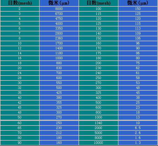 篩網(wǎng)目數(shù)與粒徑對(duì)照表以及相關(guān)知識(shí)